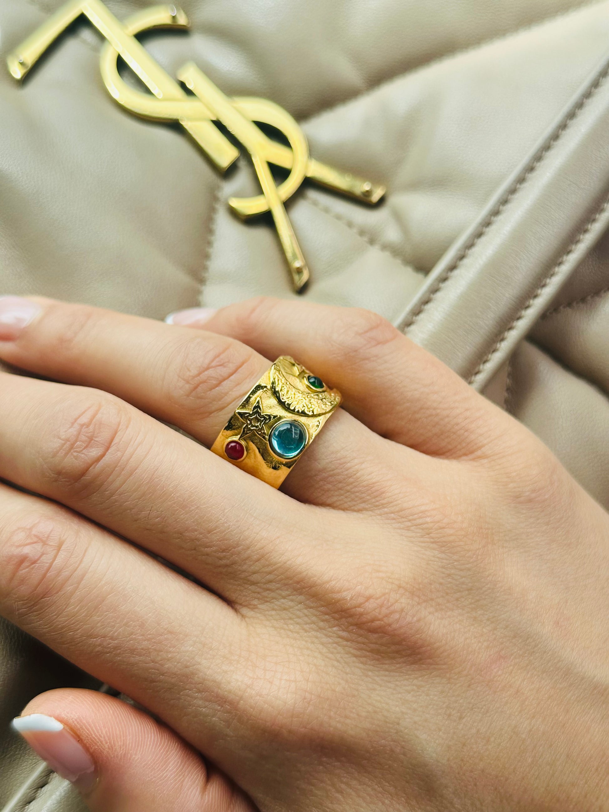 Es un anillo de acero titanio con piedras naturales y cristales inspirado en que puedas dekreta e tus deseos , hace juego con el collar Wish! Y juntos cada que los veas y los sientas puestos lograrán que pongas más atención en tus deseos , los trabajes y los logre