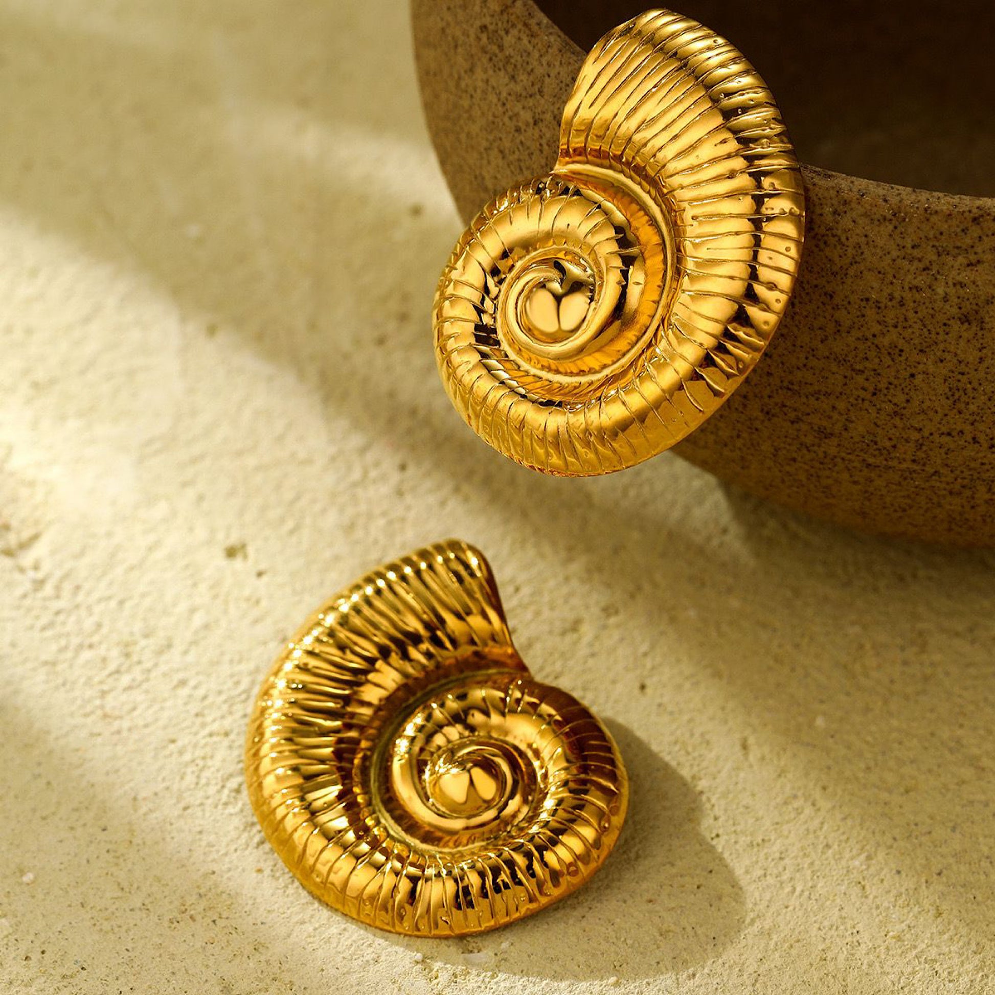 Aretes en forma de caracol de acero titanio con 6 baños de oro laminado