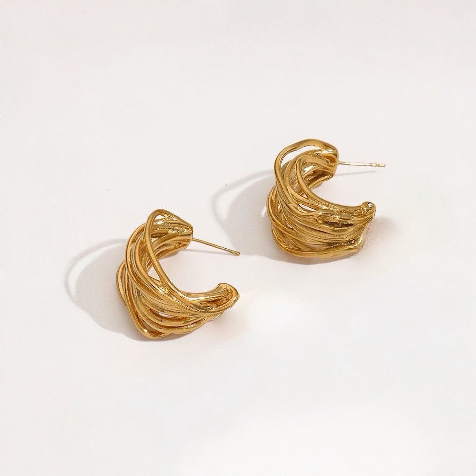 Son unos aretes en forma de media arracada pero formada por un tipo enjambre , se ve increíble y súper trendy