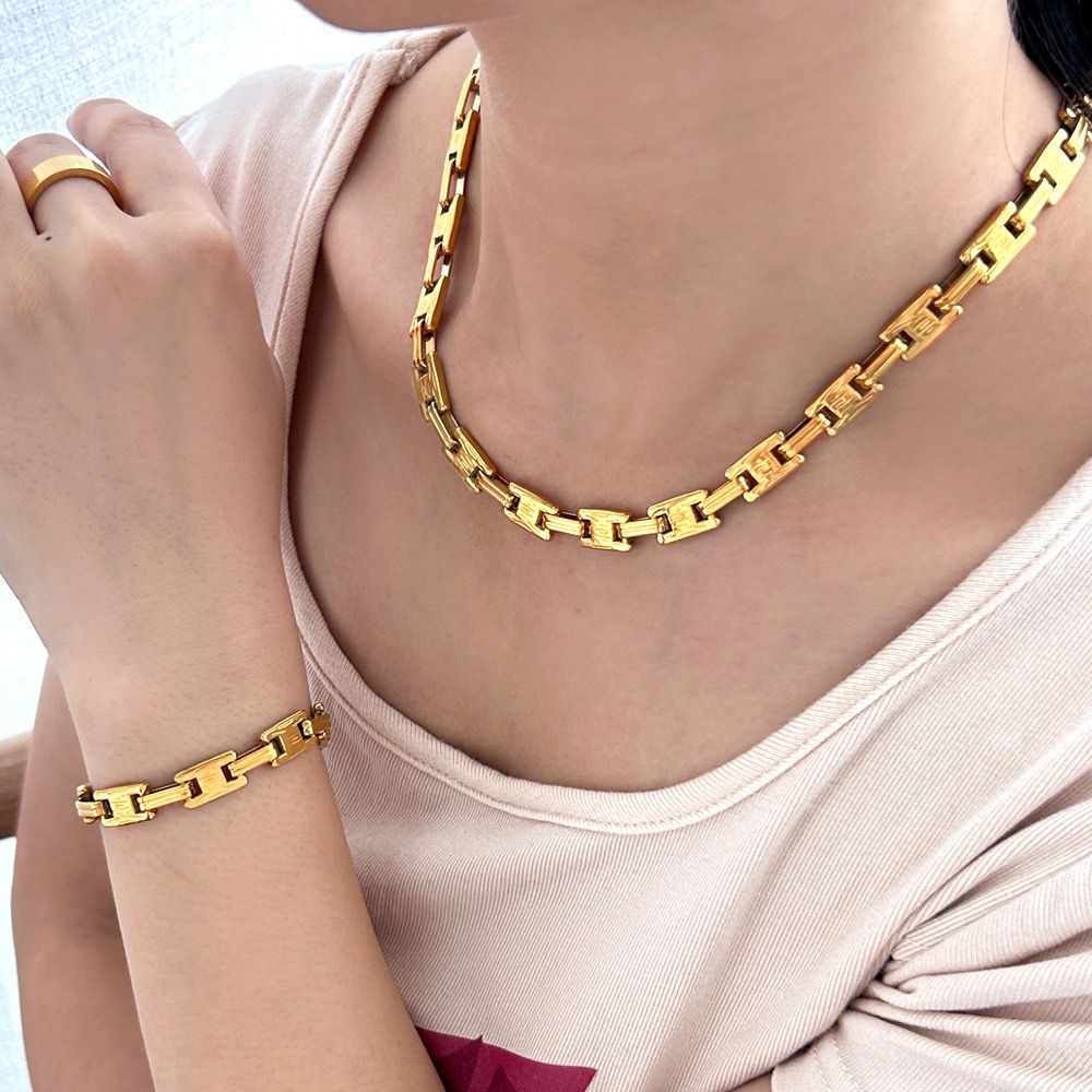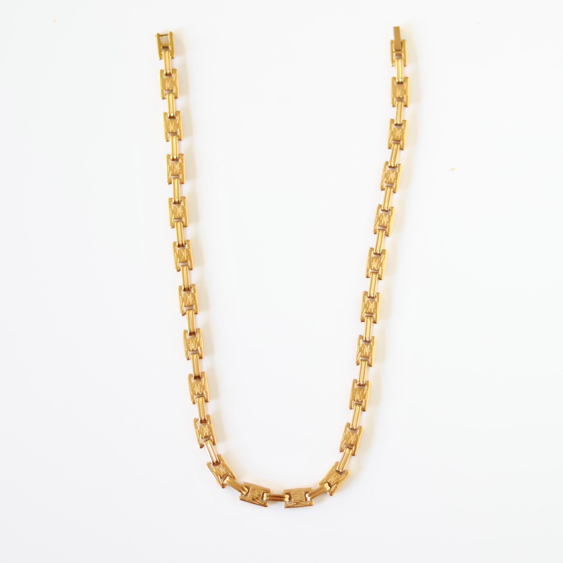 Cadena de cuadros completo y sólido con textura , de acero titanio y oro laminado resistente al agua , no se mancha