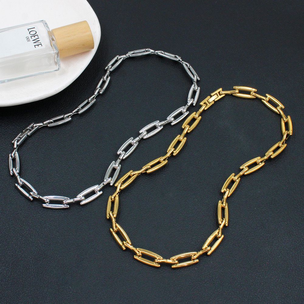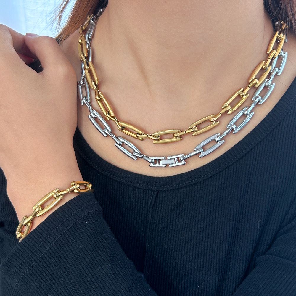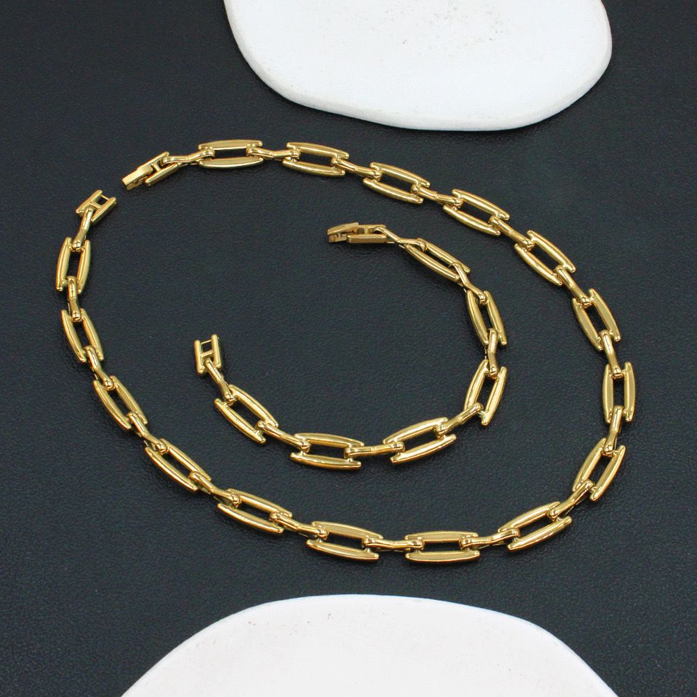 Cadena de rectangulo de acero titanio con oro laminado resistente al agua 💦