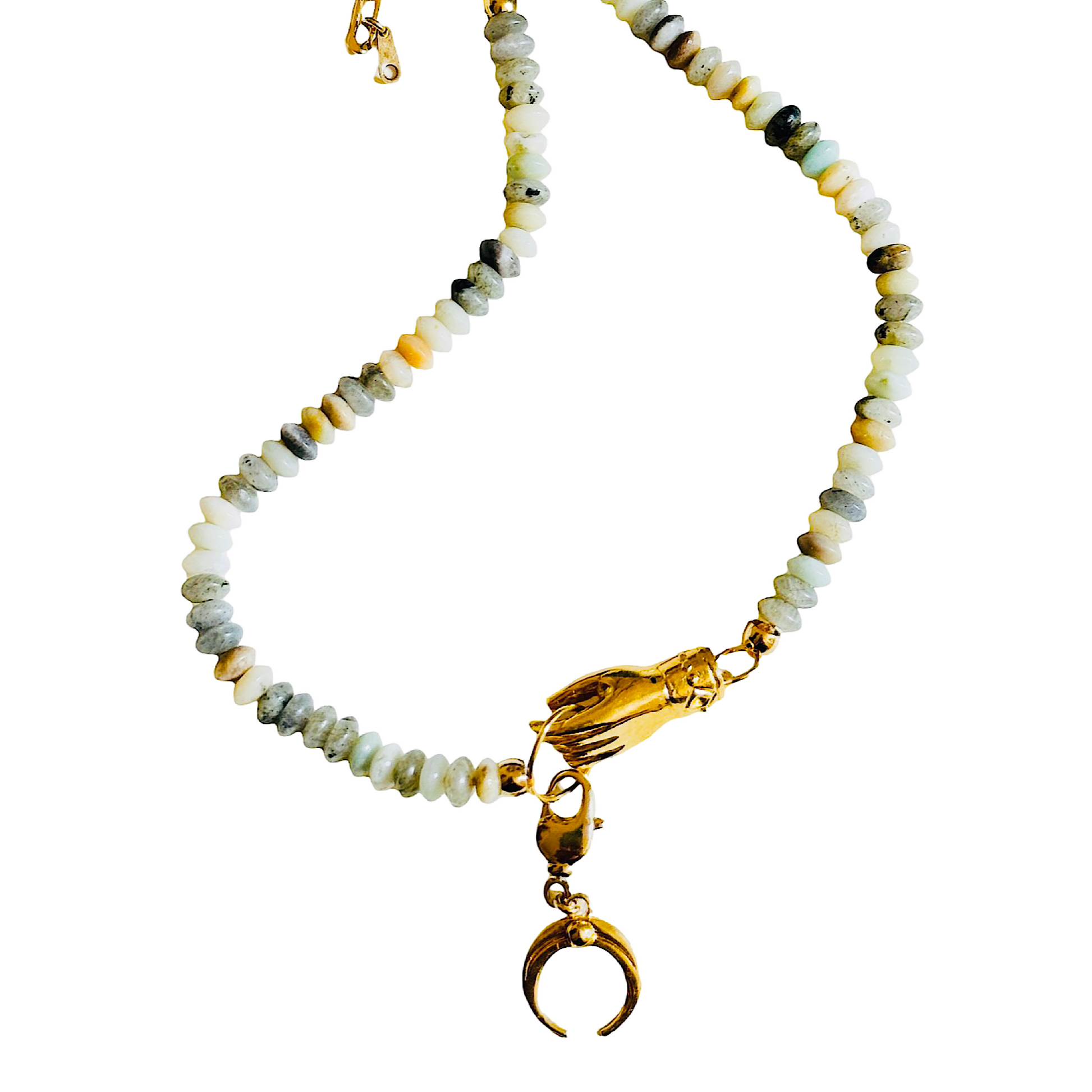 Collar de cadena mano bañada con oro laminado de 18k y cuentas de ágatas naturales !