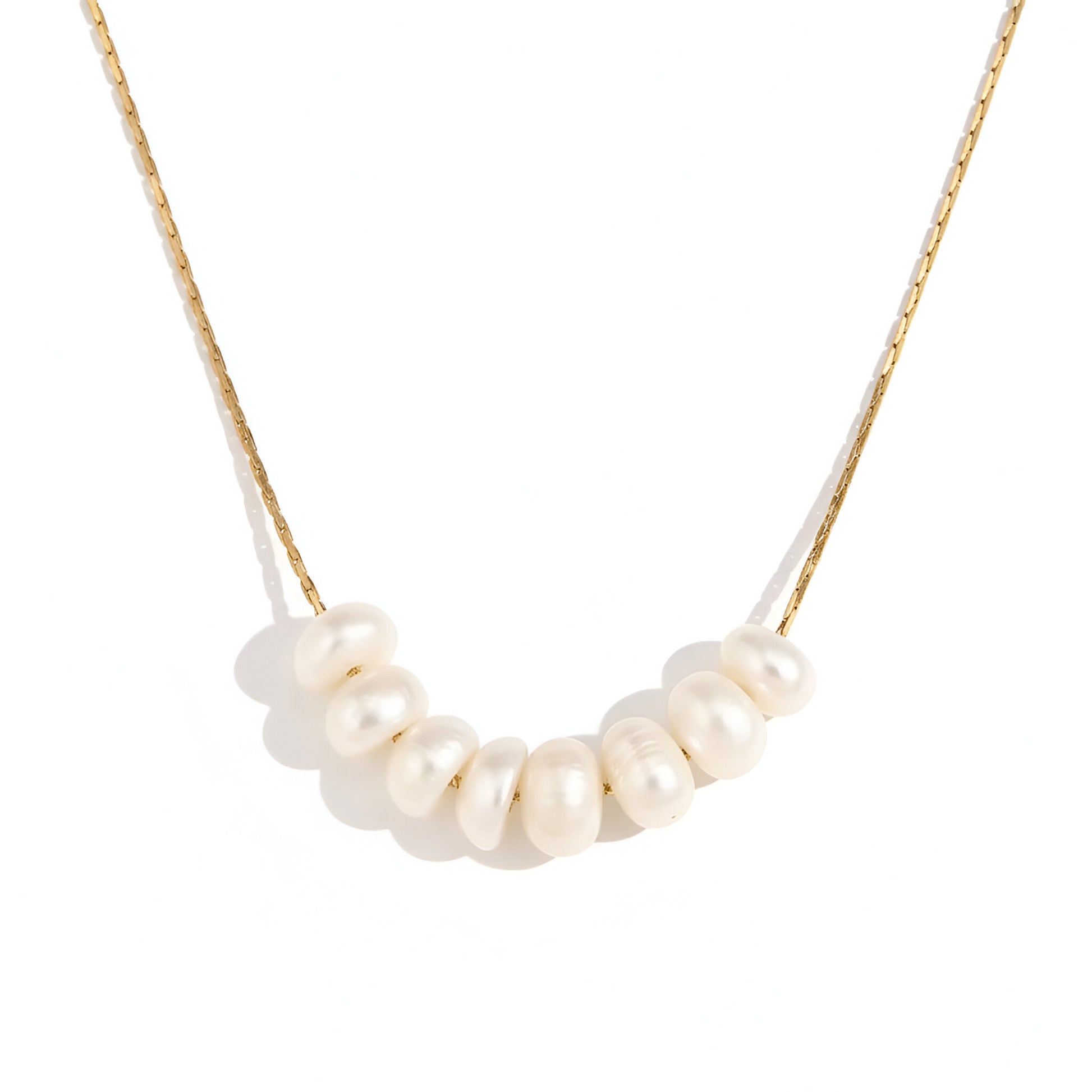 tiene 8 perlitas naturales de río en una cadena de acero titanio